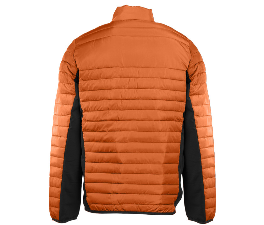 Doudoune légère moderne bi-matière, coupe ajustée. 2 poches latérales zippées. 2 poches intérieures. Protège menton. Zips contrastés. Dimension zone de marquage avant 9cm et 12cm à l’arrière.