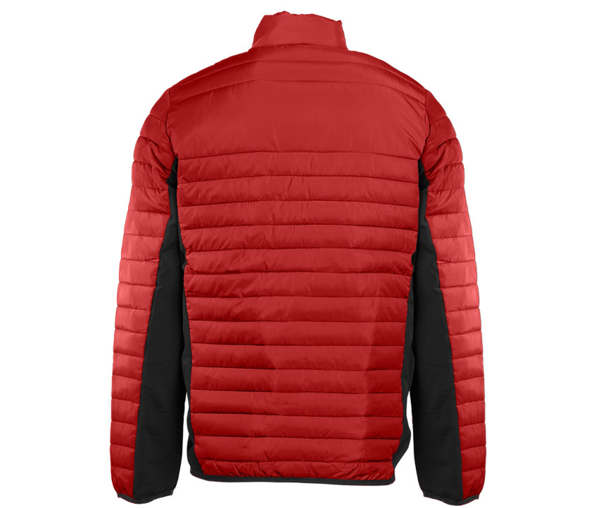 Doudoune légère moderne bi-matière, coupe ajustée. 2 poches latérales zippées. 2 poches intérieures. Protège menton. Zips contrastés. Dimension zone de marquage avant 9cm et 12cm à l’arrière.