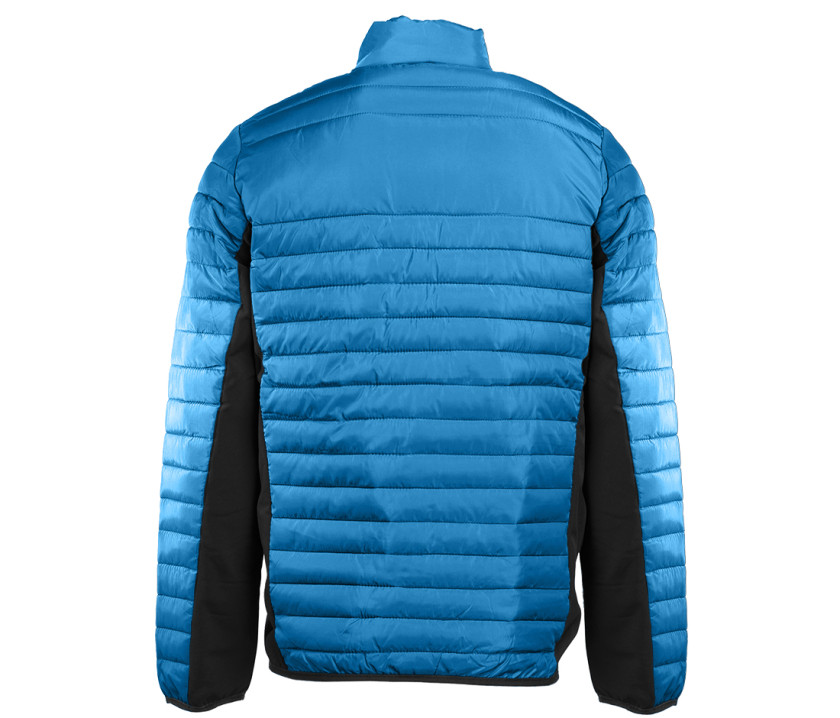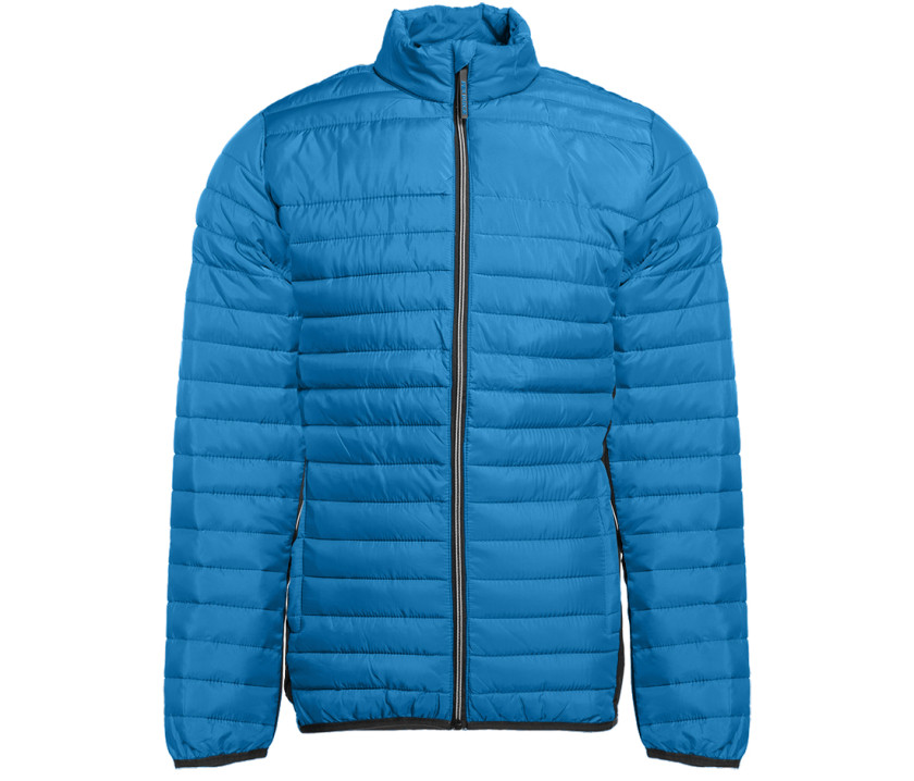 Doudoune légère moderne bi-matière, coupe ajustée. 2 poches latérales zippées. 2 poches intérieures. Protège menton. Zips contrastés. Dimension zone de marquage avant 9cm et 12cm à l’arrière.