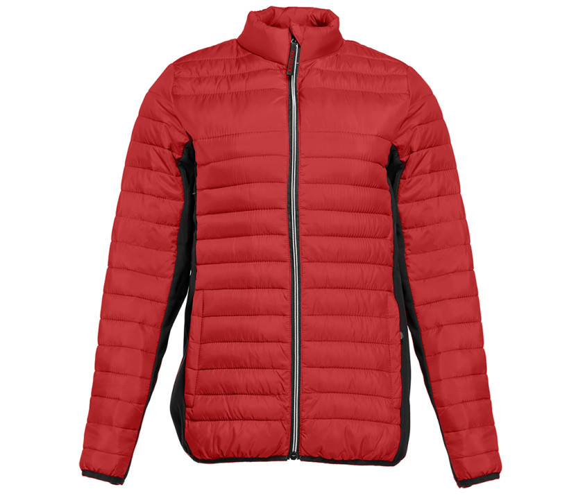Doudoune légère moderne bi-matière, coupe ajustée. 2 poches latérales zippées. 2 poches intérieures. Protège menton. Zips contrastés. Dimension zone de marquage avant 9cm et 12cm à l’arrière.