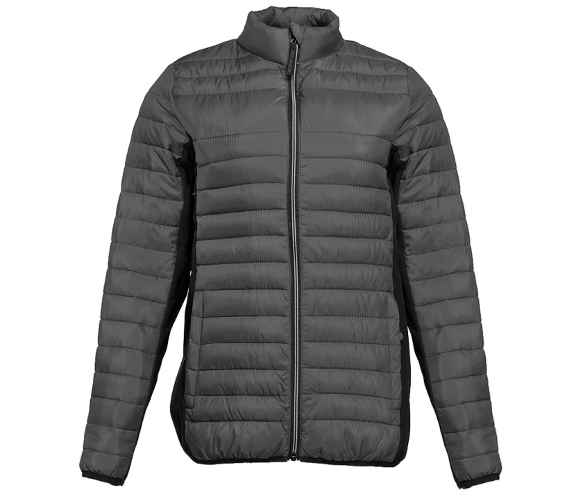 - Doudoune légère moderne bi-matière, coupe ajustée. 2 poches latérales zippées et 2 poches intérieures. Zips contrastés.