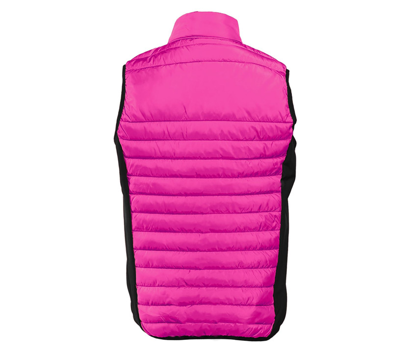 Bodywarmer léger moderne bi-matière. 2 poches latérales zippées. Protège-menton. Zips contrastés. Dimension zone de marquage avant 9cm et 12cm à l’arrière.