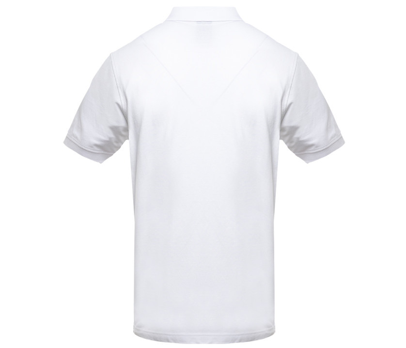 - Bande de propreté contrastée au col. Bord côte aux manches et col. Plaquette 3 boutons.