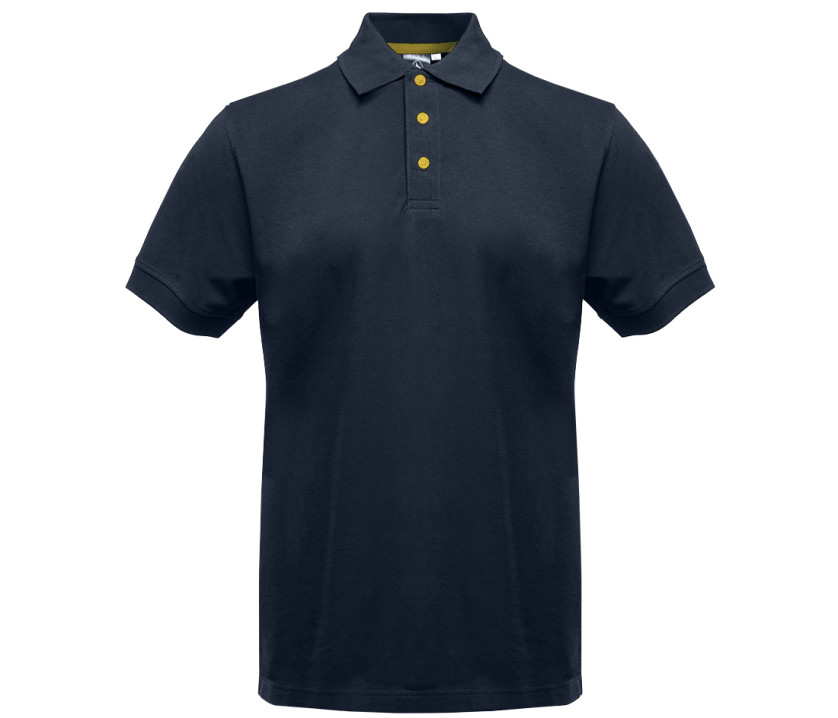- Bande de propreté contrastée au col. Bord côte aux manches et col. Plaquette 3 boutons.