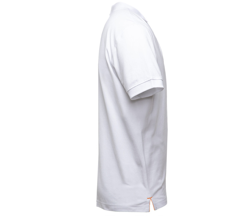 - Bande de propreté contrastée au col. Bord côte aux manches et col. Plaquette 3 boutons.