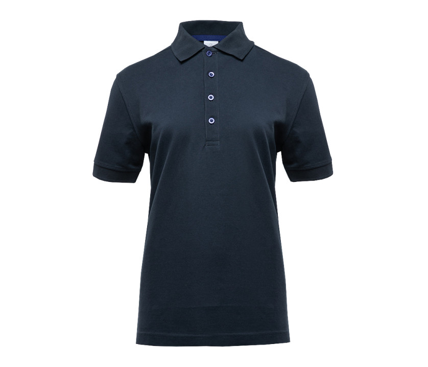 - Bande de propreté contrastée au col. Bord côte aux manches et col. Plaquette 4 boutons.