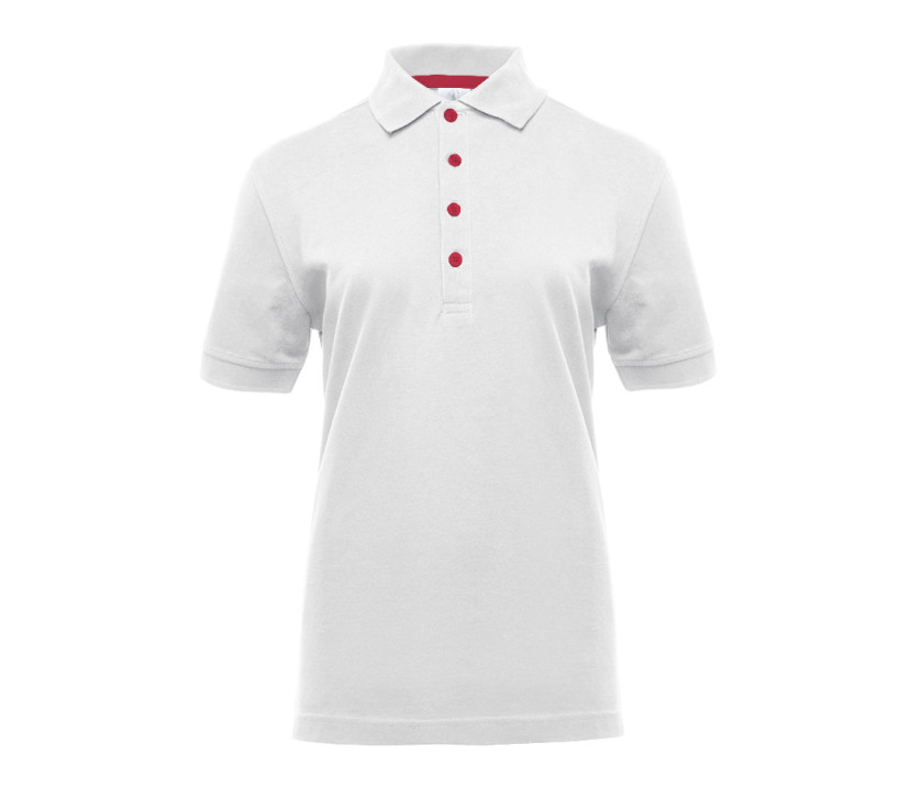- Bande de propreté contrastée au col. Bord côte aux manches et col. Plaquette 4 boutons.