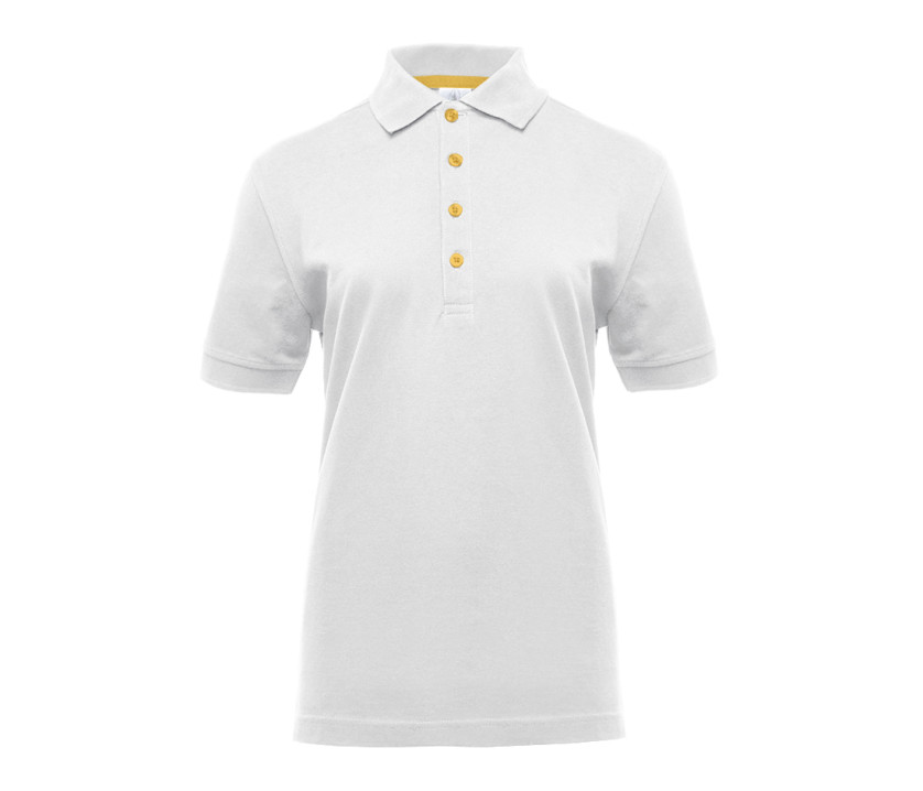 - Bande de propreté contrastée au col. Bord côte aux manches et col. Plaquette 4 boutons.
