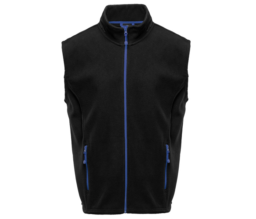 Fermeture zippée contrastée. Bande de propreté en chevron. Poches zippées avec tirette en plastique.