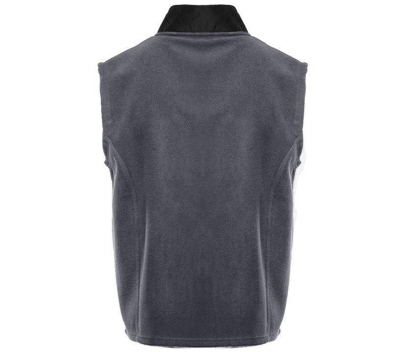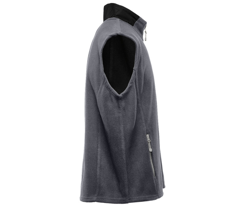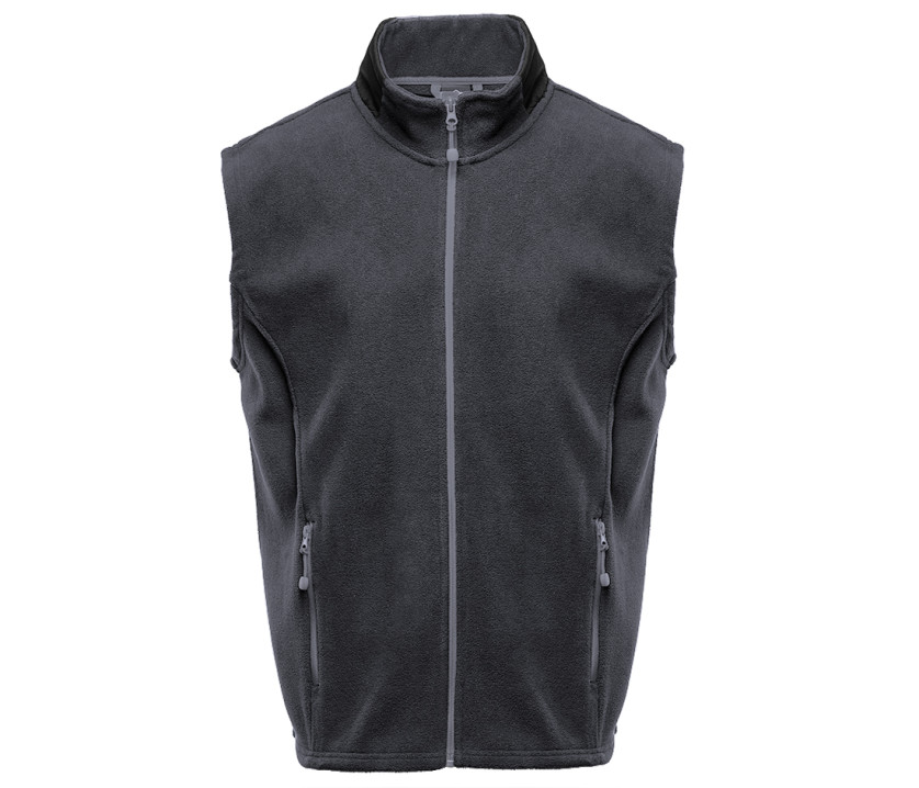 Fermeture zippée contrastée. Bande de propreté en chevron. Poches zippées avec tirette en plastique.