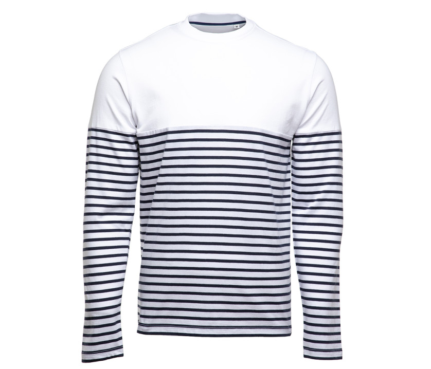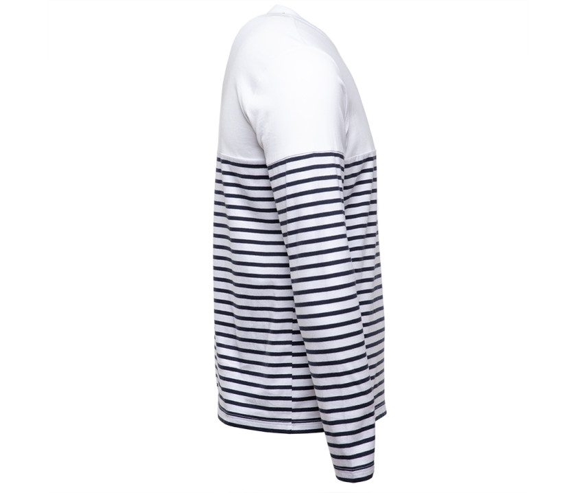 Manches longues et droites. Rayures commençant à 20 cm du col. Col avec élasthanne. Coutures latérales. Coutures en triangle sous le col..
