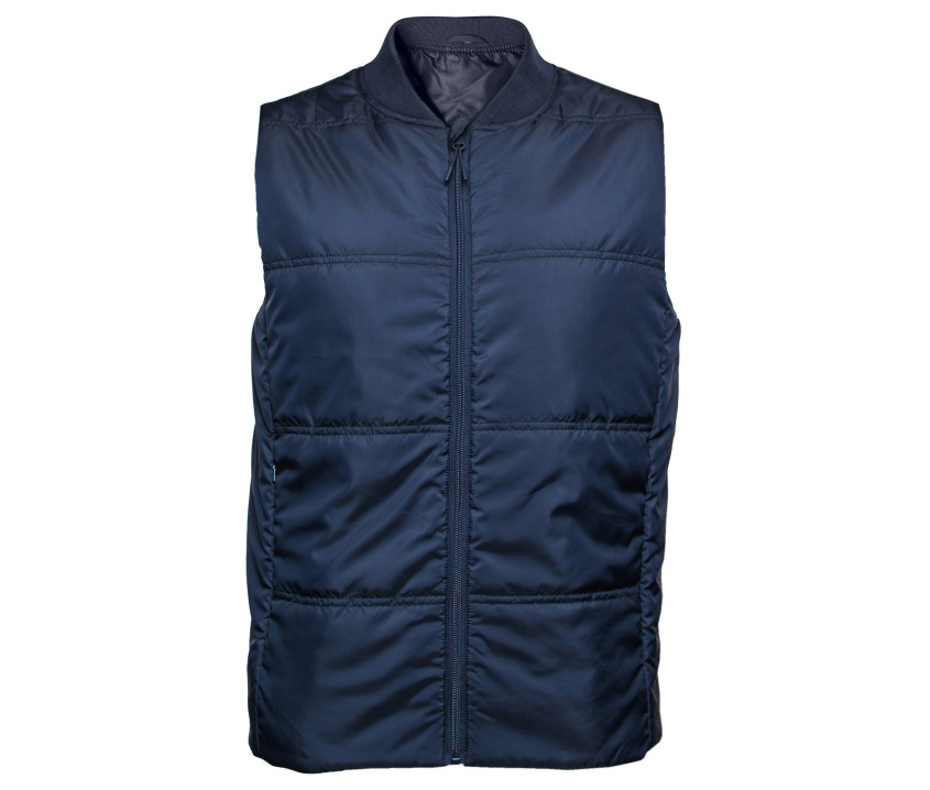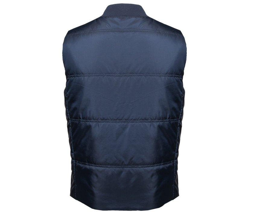 Col en bord côte. 2 poches avec zip caché. 1 poche intérieure zippée. Accès marquage. Ouatine 100% polyester recyclé. Espacement entre les coutures : 14cm.