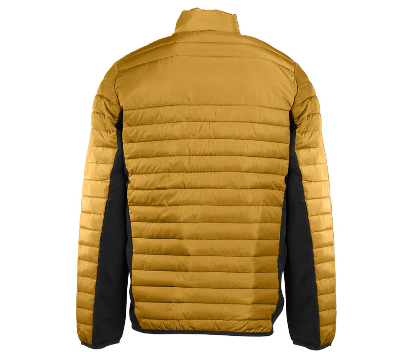 Doudoune légère moderne bi-matière, coupe ajustée. 2 poches latérales zippées. 2 poches intérieures. Protège menton. Zips contrastés. Dimension zone de marquage avant 9cm et 12cm à l’arrière.