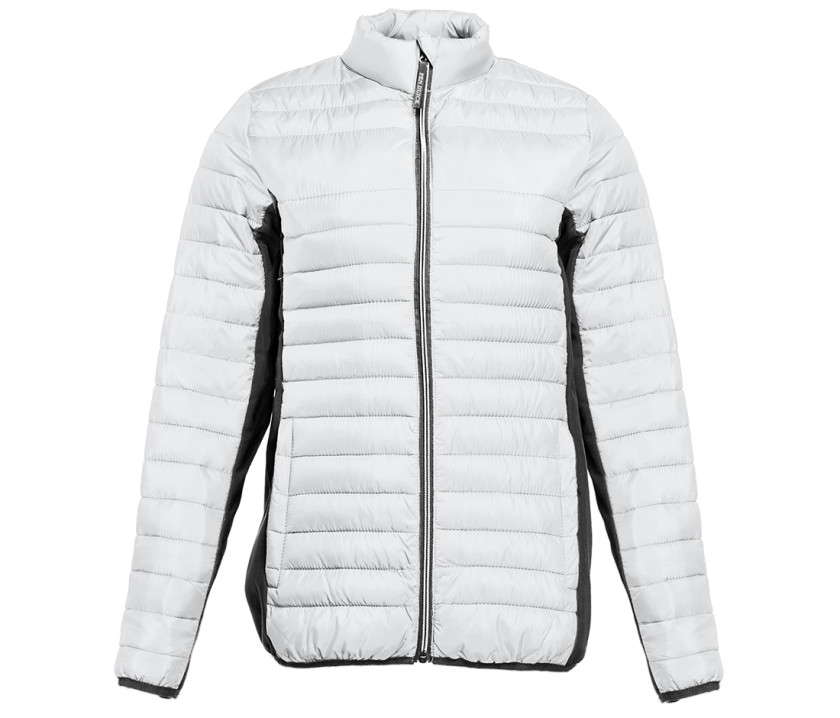 Doudoune légère moderne bi-matière, coupe ajustée. 2 poches latérales zippées. 2 poches intérieures. Protège menton. Zips contrastés. Dimension zone de marquage avant 9cm et 12cm à l’arrière.