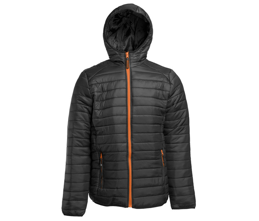 Doudoune avec capuche. Coupe-vent et déperlant. 2 poches latérales avec languette. Grande poche intérieure zippée. Poche intérieure Velcro®. Poignets et ourlet élastiqués. Hauteur entre les coutures : 4cm.