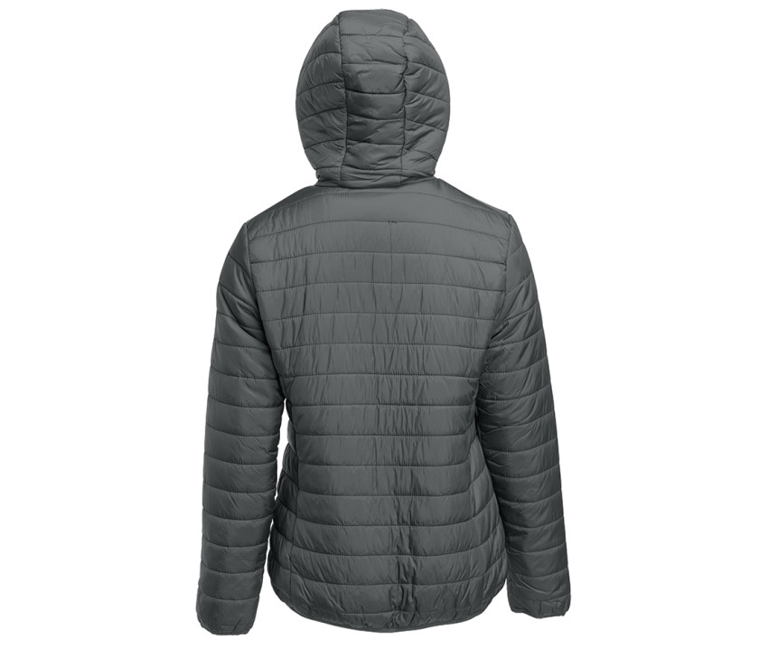 Doudoune légère à capuche femme - Coupe-vent et déperlant. 2 poches latérales avec languette et 1 grande poche intérieure zippée. Poignets et ourlet élastiqués.