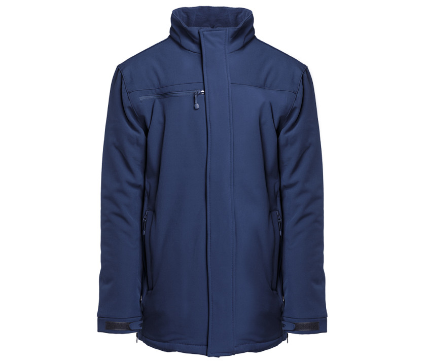 Parka Softshell homme 3 couches matelassée. Poche poitrine zippée. 2 poches zippées sur les côtés. 2 poches ouvertes sur les côtés. Possibilité d'ajouter les capuches Réf. PK995, Réf. PK996 et Réf. PK997 page 209 (zip caché dans le col). Accès marquage dans le dos. Poche tablette intérieure. Poignets ajustables par languettes Velcro®.