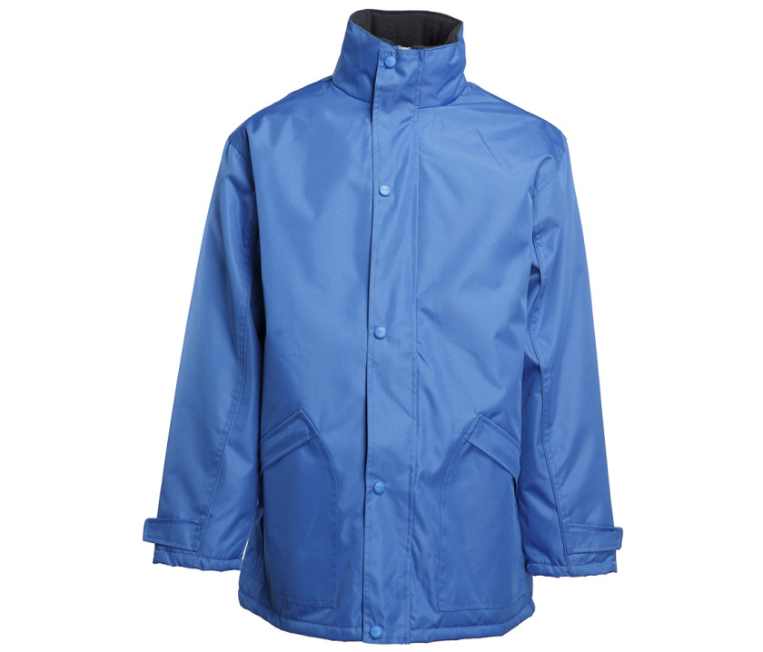 Coupe-vent avec enduction imperméable 1000mm. Col doublé polaire. Velcro® aux manches. 2 poches extérieures zippées. 2 poches intérieures (portefeuille et GSM). Capuche dans le col. Accès pour personnalisation (cœur et dos).