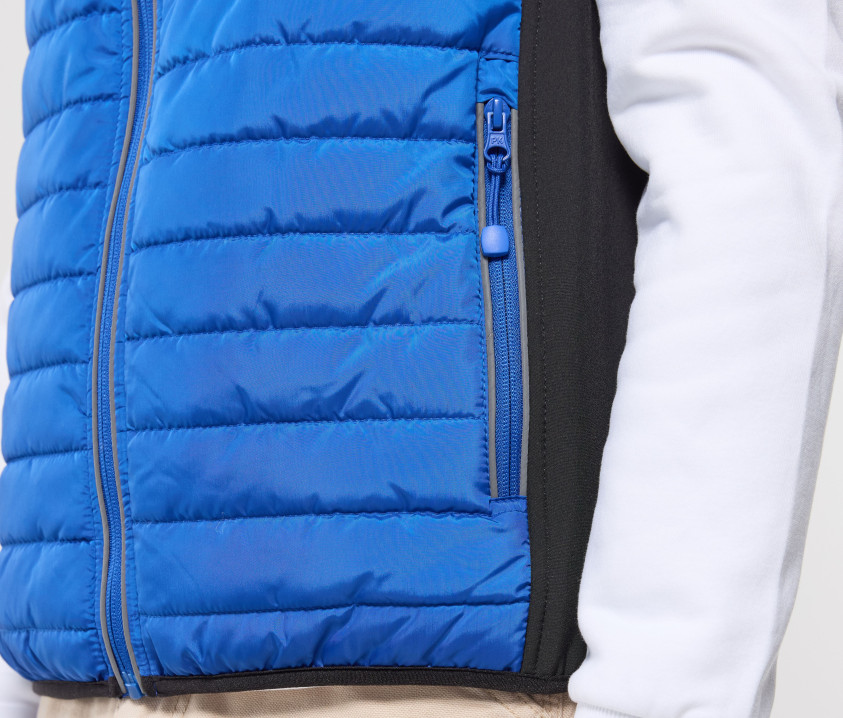 - Bodywarmer bi-matière déperlant et coupe-vent. 2 poches latérales. Ourlet réfléchissant sur les zips.