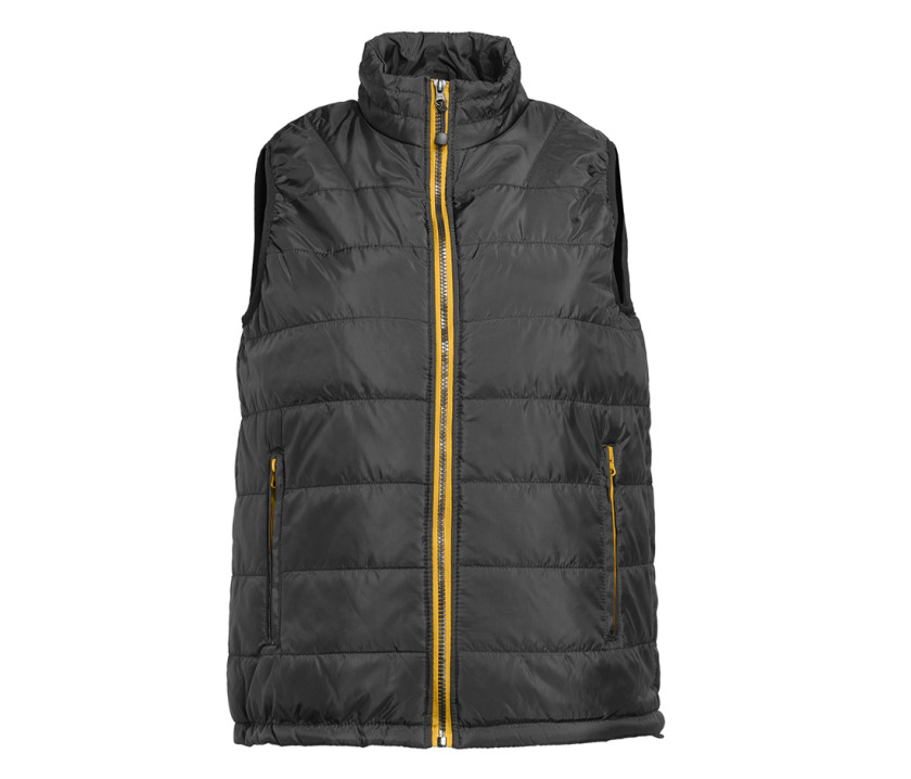 Bodywarmer tendance femme - Grand zip avec une poche intérieure gauche pour marquage. Possibilité de ranger totalement le bodywarmer dans la poche intérieure droite avec fermeture Velcro®. 2 poches latérales zippées avec rabat.