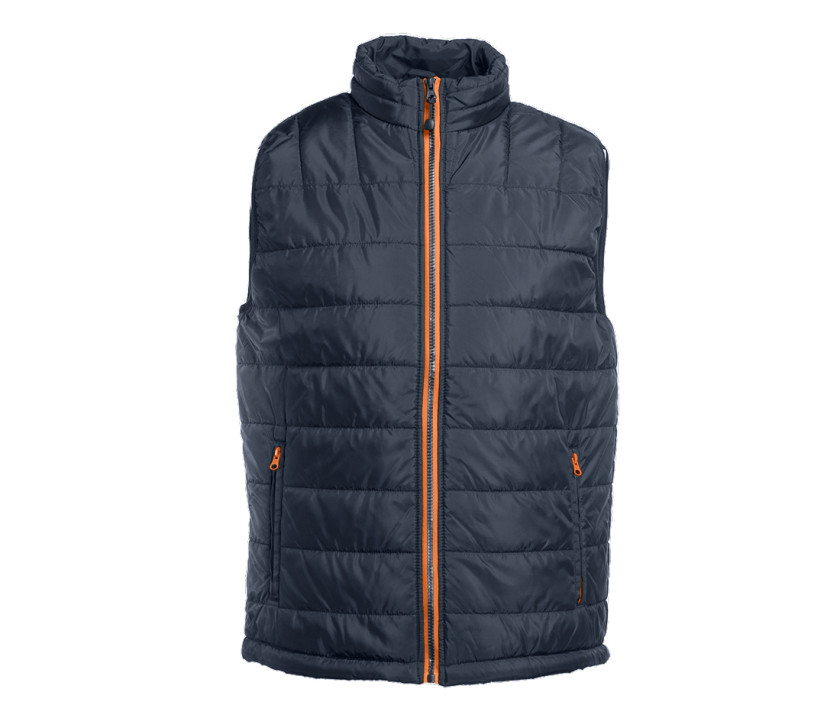 Bodywarmer tendance homme - Grand zip avec une poche intérieure gauche pour marquage. Possibilité de ranger totalement le bodywarmer dans la poche intérieure droite avec fermeture Velcro®. 2 poches latérales zippées avec rabat.