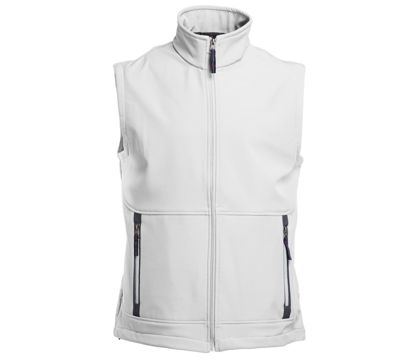 Gilet Softshell ultra léger. Tissu contrecollé 3 couches avec membrane respirante (800g) et imperméable (3000-5000mm). 2 poches zippées. Élastique bas avec stoppers. Intérieur en micropolaire.