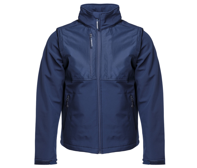 Softshell manches amovibles - Possibilité d'ajouter les capuches Réf. PK995, Réf. PK996, Réf. PK997 (zip caché dans le col). Manches amovibles. Empiècement en ripstop sur le buste pour faciliter le marquage.