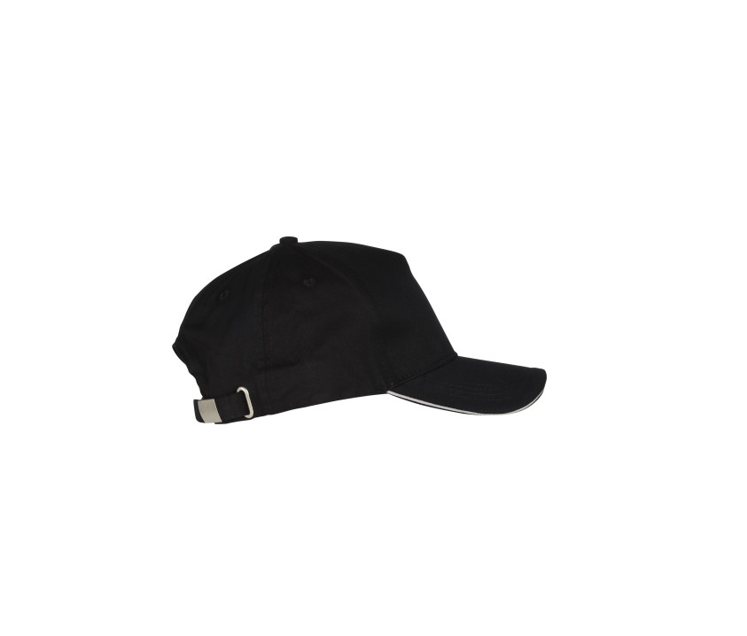 Panneau frontal renforcé. Visière sandwich avec contraste. Fermeture par boucle métal. Parfaite pour la sérigraphie et la broderie.