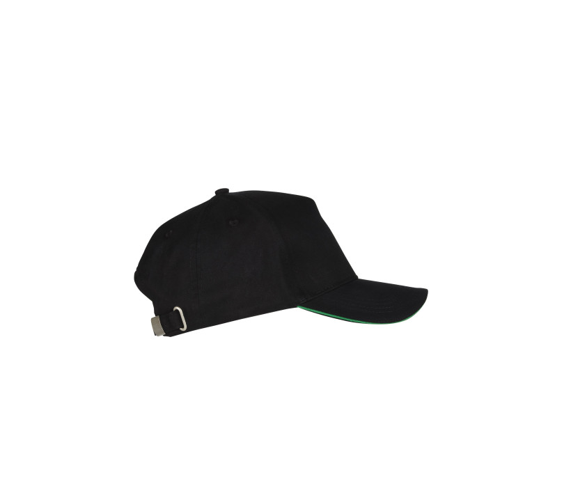 Panneau frontal renforcé. Visière sandwich avec contraste. Fermeture par boucle métal. Parfaite pour la sérigraphie et la broderie.