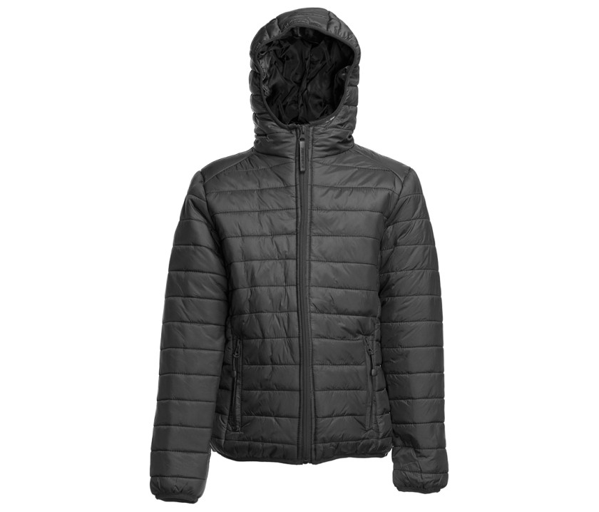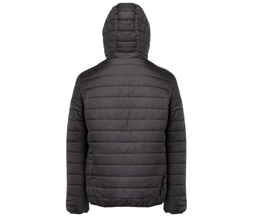 Doudoune avec capuche. Coupe-vent et déperlant. 2 poches latérales avec languette. Grande poche intérieure zippée. Poche intérieure Velcro®. Poignets et ourlet élastiqués. Hauteur entre les coutures : 4 cm.
