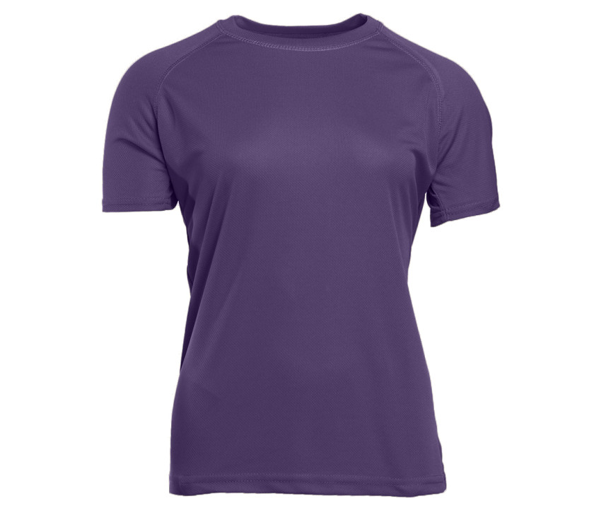 - Tee-shirt femme en 100% polyester à séchage rapide. Coupe ajustée. Manches raglan.