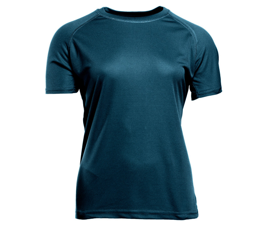 - Tee-shirt femme en 100% polyester à séchage rapide. Coupe ajustée. Manches raglan.