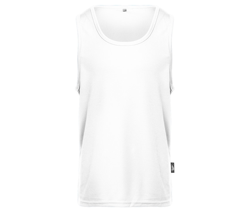 Débardeur de sport homme. Étiquette imprimée pour plus de confort. Léger et respirant. Coupe sportive. Col et emmanchures de la même matière que le débardeur. Disponible en 9 couleurs.