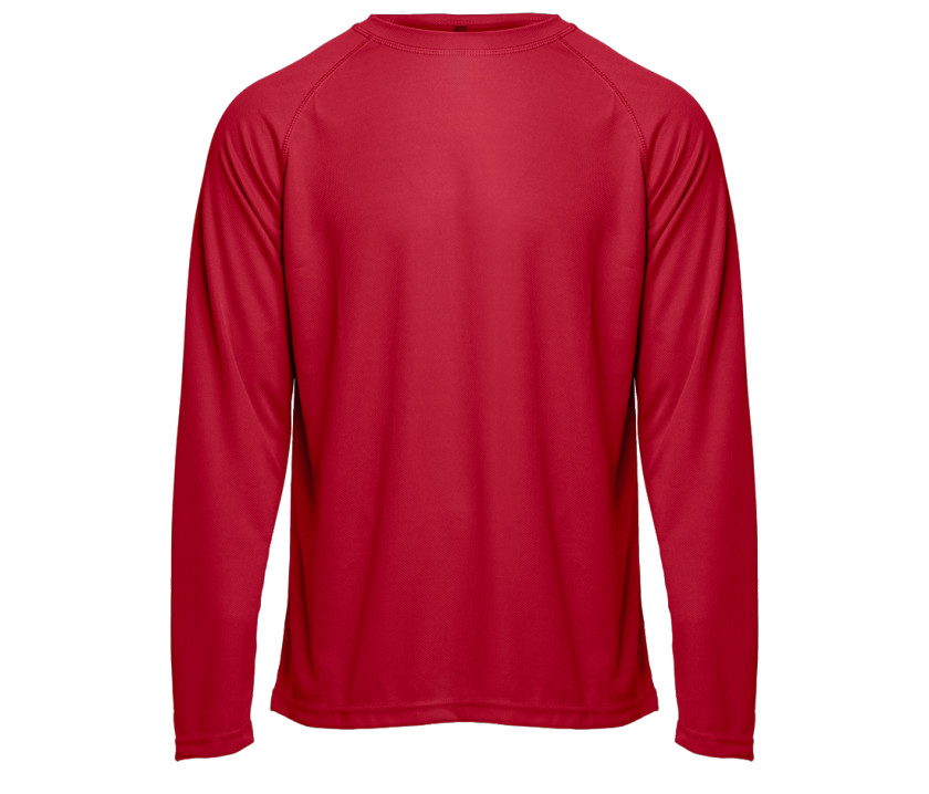 Matière en 100% polyester facilitant l’évacuation de la transpiration. Léger et respirant. Manches longues raglan.