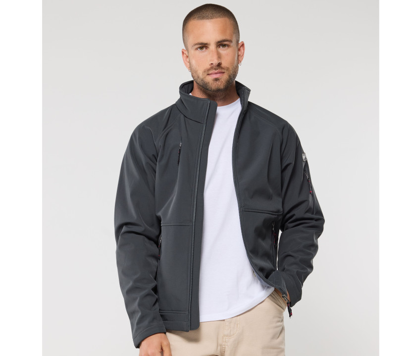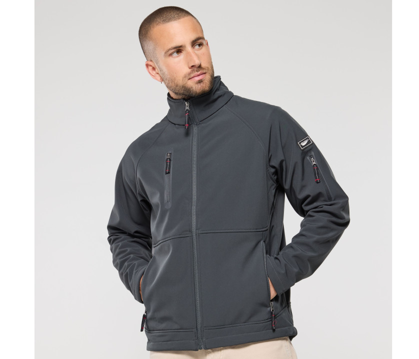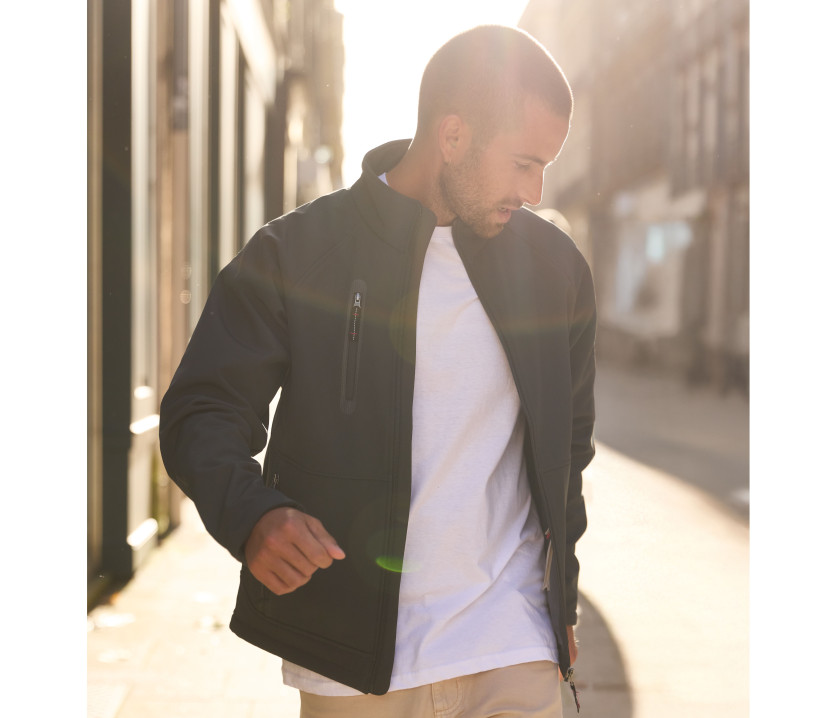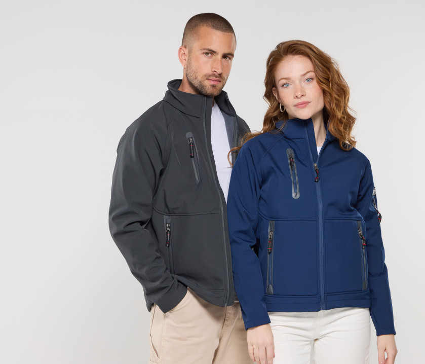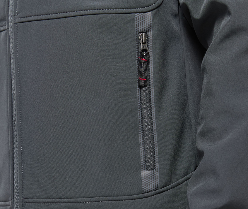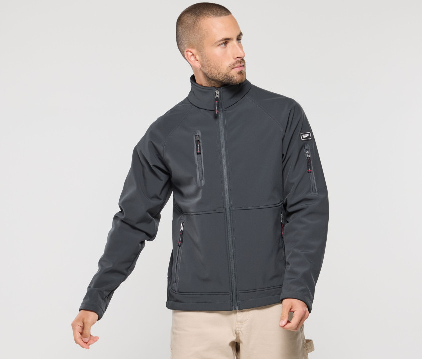 Blouson Softshell ultra léger. Tissu contrecollé 3 couches avec membrane respirante (800g) et imperméable (3000-5000mm). Intérieur en micropolaire. 3 poches extérieures zippées. Élastique bas avec stopper. Coupe ajustée. 1 poche zippée sur la manche. Modèle bodywarmer PK765 page 187.