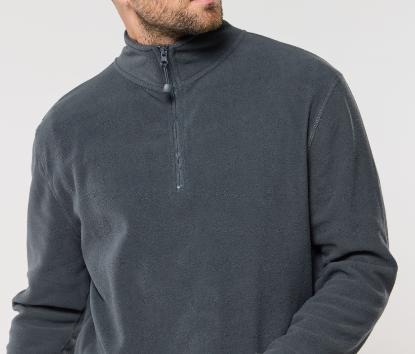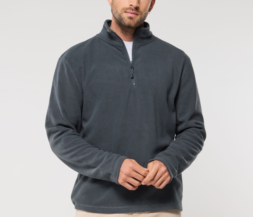 Polaire col zippé. Coupe droite. Anti-peluche. Bande de propreté en twill. Manches droites.