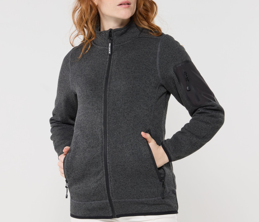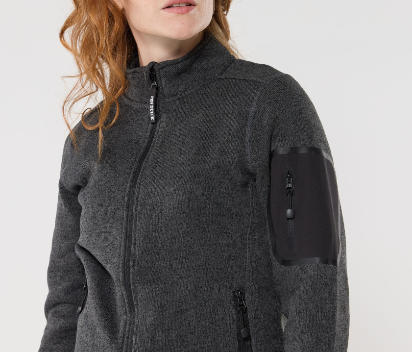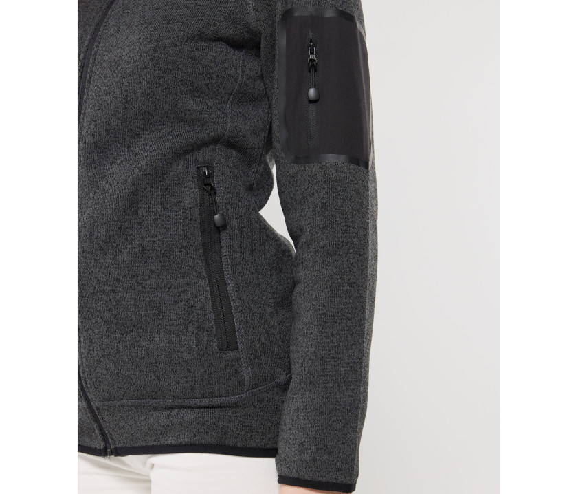 Polaire tricotée femme 300 g/m². Poche zippée sur le bras. 2 poches zippées.